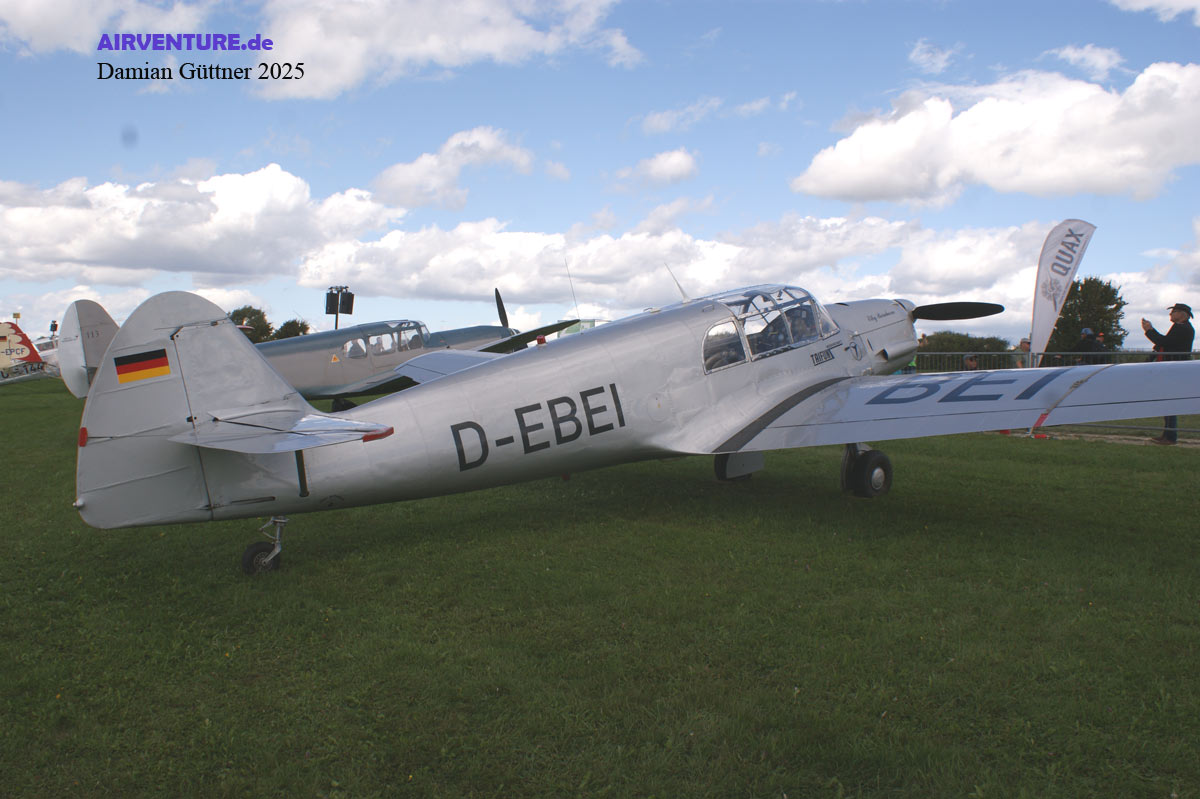 Kaum zu glauben, dass die Messerschmitt 108 Taifun mehr als 90 Jahre alt ist! Sie war dank ihrer modernen Bauweise und dem Einziehfahrwerk ein wahrer Quantensprung. Die hier gezeigte D-EBEI wird von den Quax-Fliegern betrieben und ist in Paderborn beheimatet.