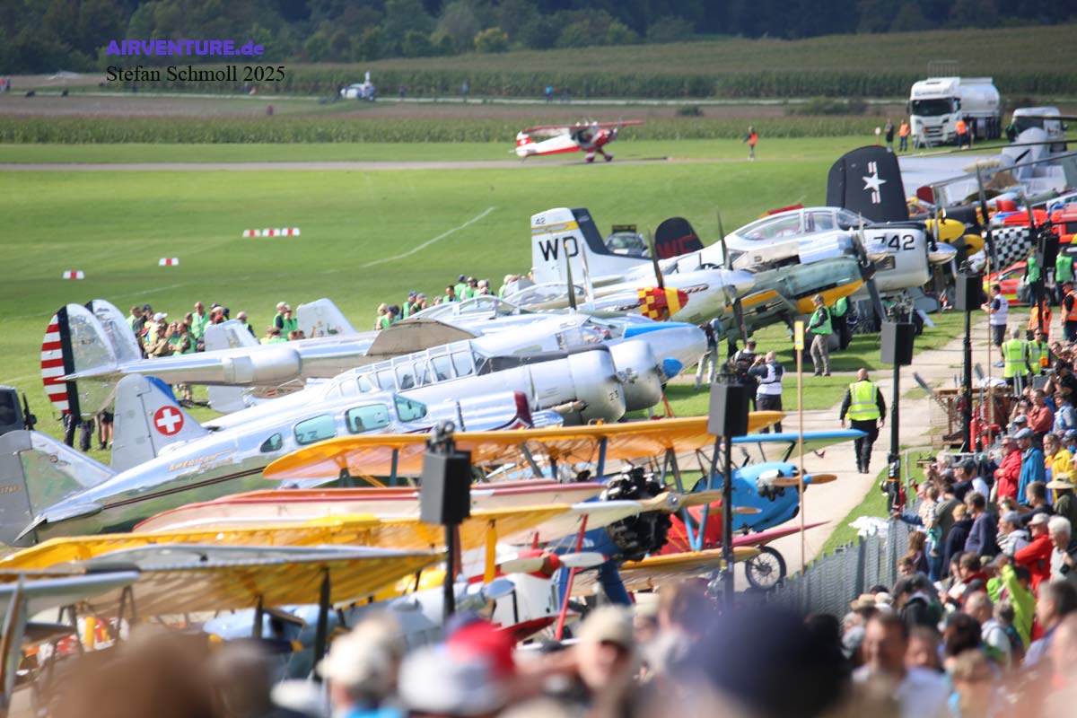 Die Doppeldecker an der Flightline waren wie immer in mehreren Reihen eng geschachtelt. In diesem Jahr hatten die Besucher erstmals keine Möglichkeit, all die schönen Flugzeuge am frühen Morgen ohne Barriere zu fotografieren. Diese aus Sicht des Veranstalters verständliche Entscheidung kam nicht bei allen Besuchern gut an.