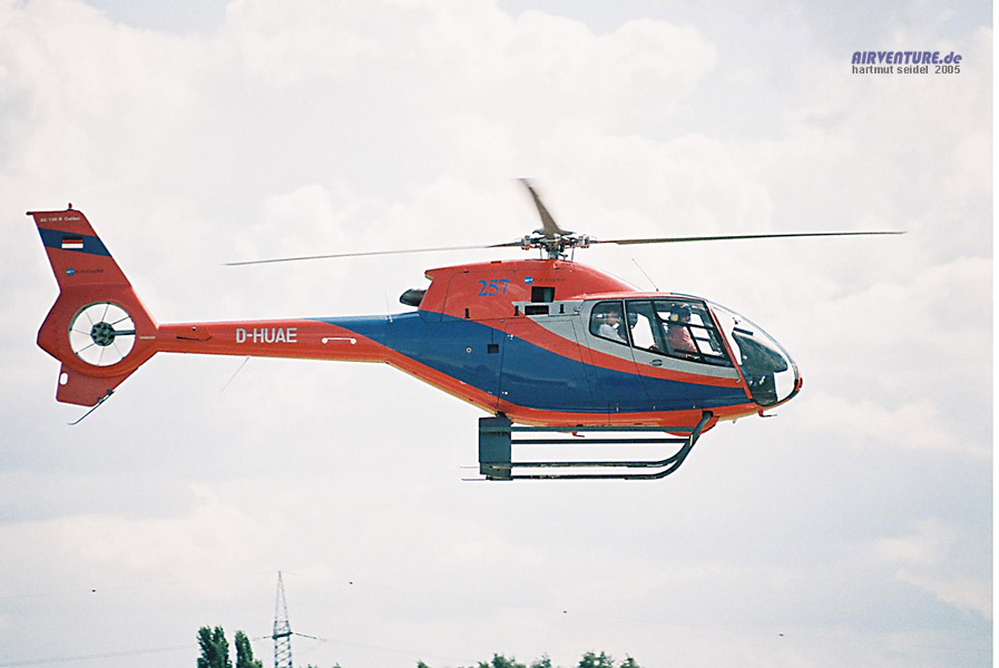 EC 120 Der Eurocopter EC 120 stand am Wochenende für Rundflüge bereit. Falls Sie sich fragen, was die `blaue 257´ zu bedeuten hat: Diese Nummern werden an die teilnehmenden Maschinen der ILA in Berlin geklebt.