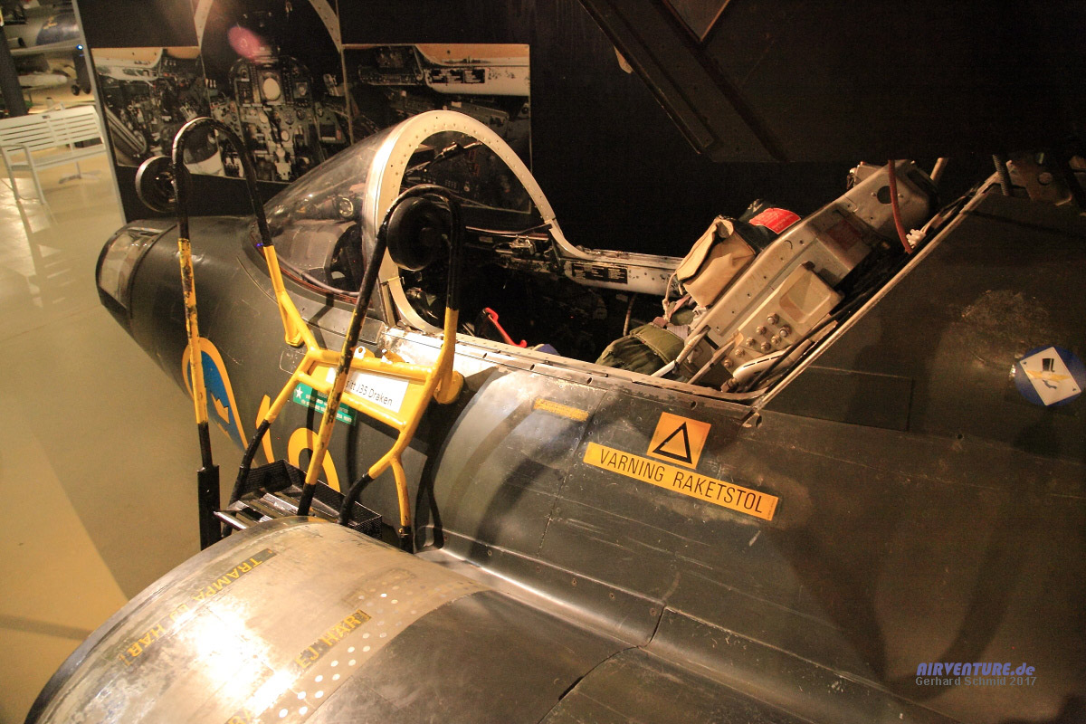 Wer gern mal in einem Cockpit Platz nehmen möchte, darf sich diesen Wunsch hier in einer Saab Draken erfüllen. |