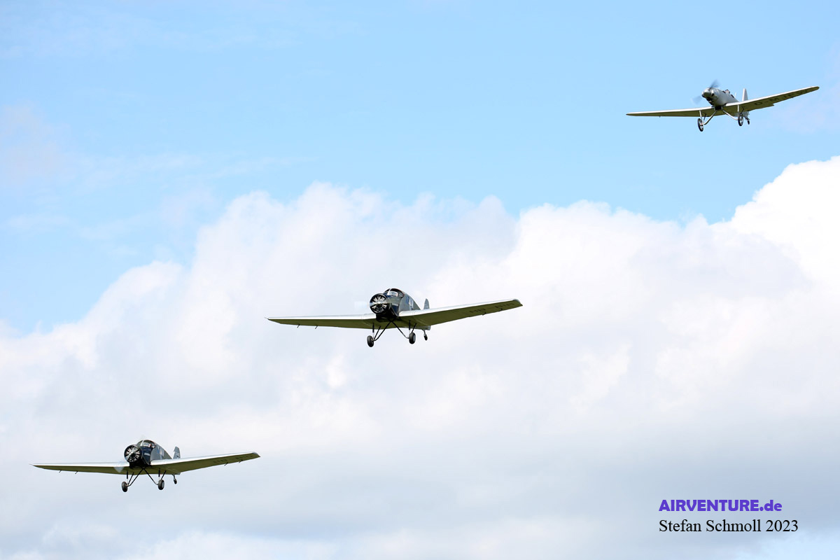 Ende August ist im Lande die Zeit der Flugplatzfeste. Der LSC Bayer Leverkusen war mit dabei und konnte besonders mit einigen neuen Junkers Flugzeugen aufwarten. Schön war's wieder in Leverkusen. Ilse Janicke flog fleißig Passagiere in der roten Antonow An-2 D-FKMB über das Rheintal und Uwe Wendt aus dem benachbarten Hangelar begeisterte die Zuschauer mit High-End Akrobatik in seiner mehr als 300 PS starken Extra 330 LX. Schließlich kamen am Samstagmittag die Paderborner Quaxe stilecht mit Beech Twin-Bonanza und der gelben Pilatus P-3 eingeschwebt und aus Bad Kissingen kam eine der Quax-Chipmunks nach Leverkusen. Thomas Schüttoff und Michael Manousakis ließen es sich nicht nehmen, mit der in Mendig beheimateten Douglas DC-3 gegen 11:00 auf ihrem Weg nach Nordhorn zweimal schick über den Leverkusener Platz zu fliegen, welch schöne Überraschung für alle frühen Besucher. Meine persönlichen Highlights waren allerdings recht neue Maschinen, und zwar in Form von diversen Junkers. Mittlerweile wurden drei Junkers F13 nachgebaut. Die erste (ehemals HB-RIM) befindet sich mittlerweile in den Vereinigten Staaten. HB-RIA und HB-RIO fliegen nicht nur fleißig ab St.Gallen in der Schweiz, sondern stehen auch in Deutschland für Rundflüge zur Verfügung. Hierzu haben die Macher eigens den https://www.junkers-luftverkehr.com/ gegründet. Wer hätte gedacht, dass man nach dem bedauernswerten Ende der legendären Junkers Ju52 Gastflüge nun doch wieder als Passagier in historisches Wellblech einsteigen kann. In Leverkusen waren übrigens nicht nur beide F13 in der Luft, sondern auch mehrere der neu produzierten Junkers A 50. Ein Exemplar des schicken Retro-Zweisitzers ist ab sofort hier in Leverkusen beheimatet und dürfte zukünftig von den zahlreichen Mitgliedern des LSC gerne geflogen werden. Für AirVenture war Stefan Schmoll vor Ort.