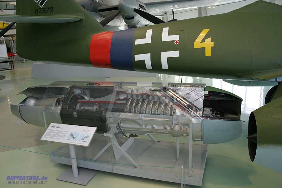 Me-262. Die Standzeit der ersten Turbinen war mit ca. 20 Betriebsstunden nicht gerade