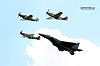 Und natürlich war die Solovorführung nicht der einzige Grund, die F-15 einzuladen. Erstmals gab es über Duxford den in den Vereinigten Staaten beliebten `Heritage Flight´. Hier sind moderne und historische Kampfflugzeuge der USAF gemeinsam im engen Verbandsflug zu sehen. |
