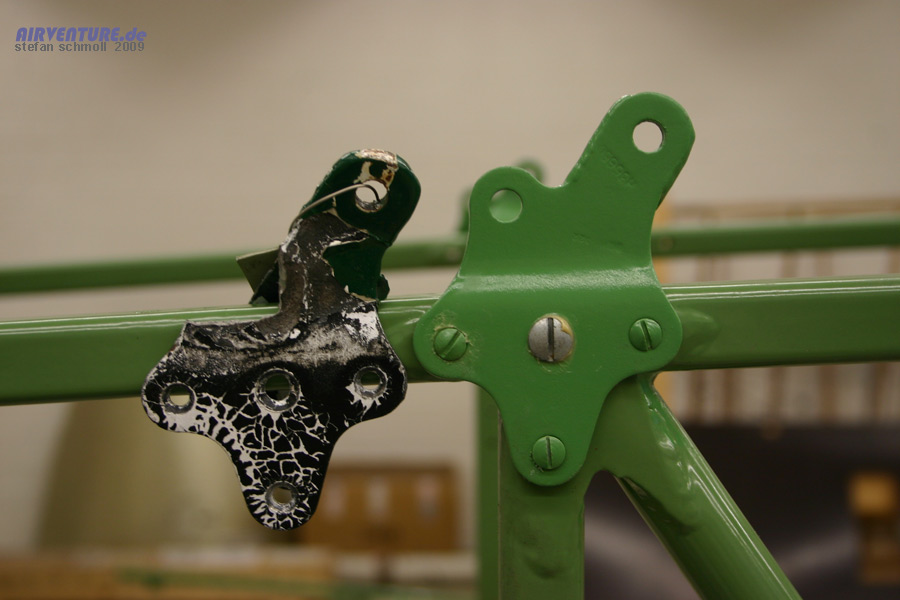 Ein Blick in das Innenleben der Bücker Bestmann. Wenn man die jahrelange Lagerung in diversen Depots berücksichtigt, so ist die Maschine noch in einem erstaunlich guten Zustand. Natürlich wird es noch einige Jahre dauern, aber dann wird sich dank des Restaurierungsteams der Quax-Flieger die Bestmann wieder in den Himmel erheben. |