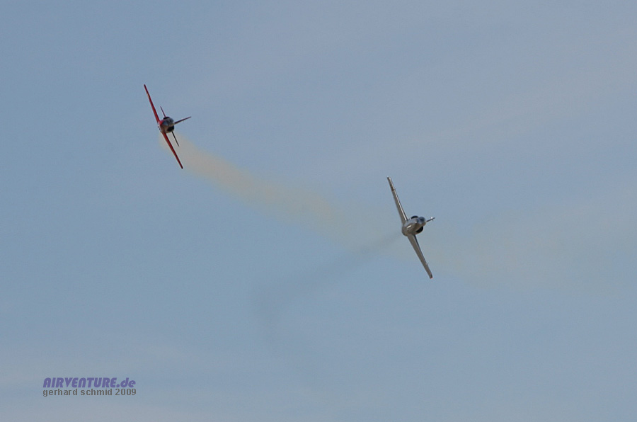 Curt Brown mit der L-29 #77 "Viper" und Joe Gano mit der L-39 #2 "Pip Squeak im Norden des Rennkurses. |