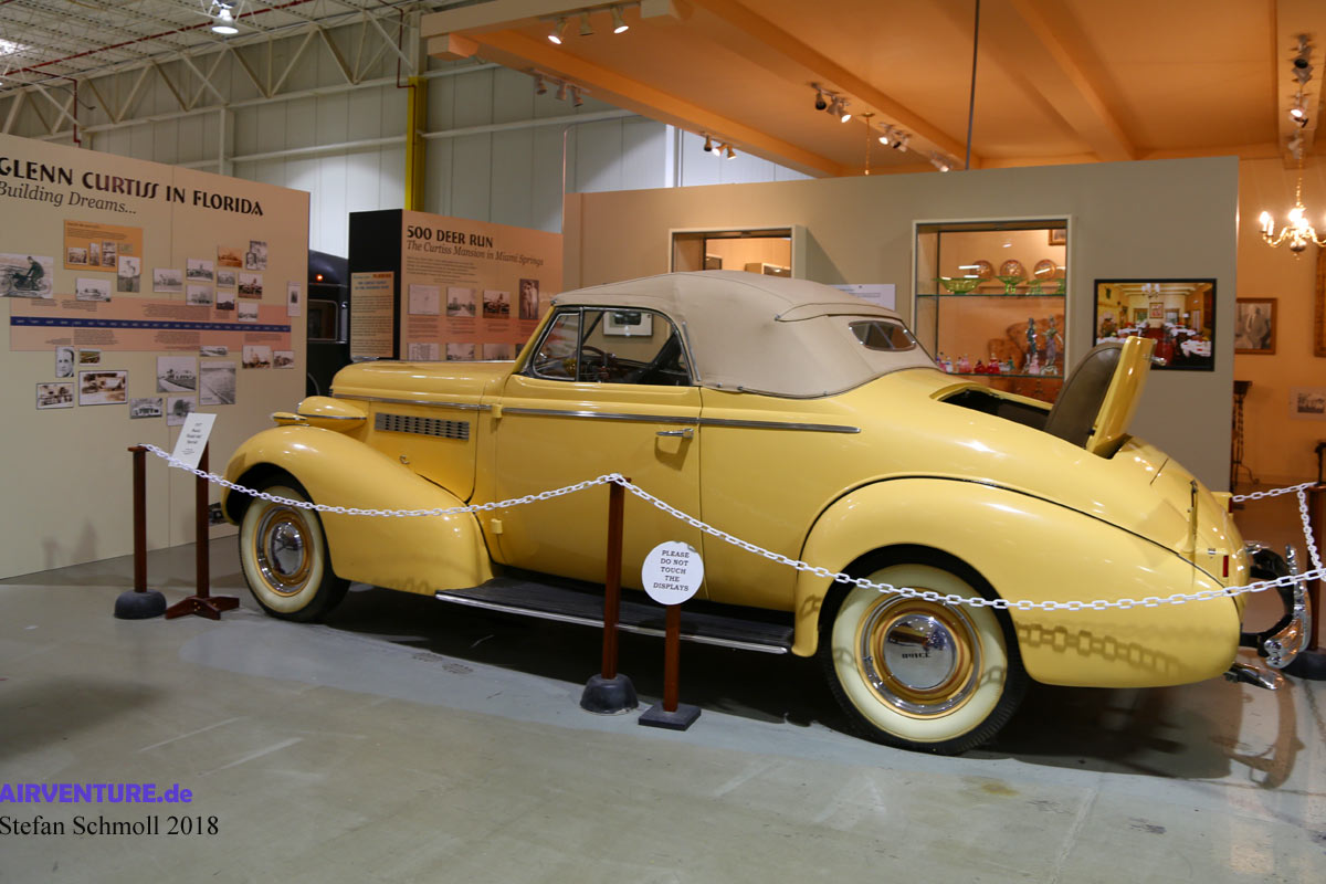 Curtiss hat sich 1920 aus seiner Firma zurückgezogen und zog mit seiner Familie nach Florida, wo er weiter erfolgreich als Geschäftsmann tätig war. Aus dieser Zeit wird ein Zimmer der Familie präsentiert und mehrere seltene Fahrzeuge wie diesen Buick 46C Special. |